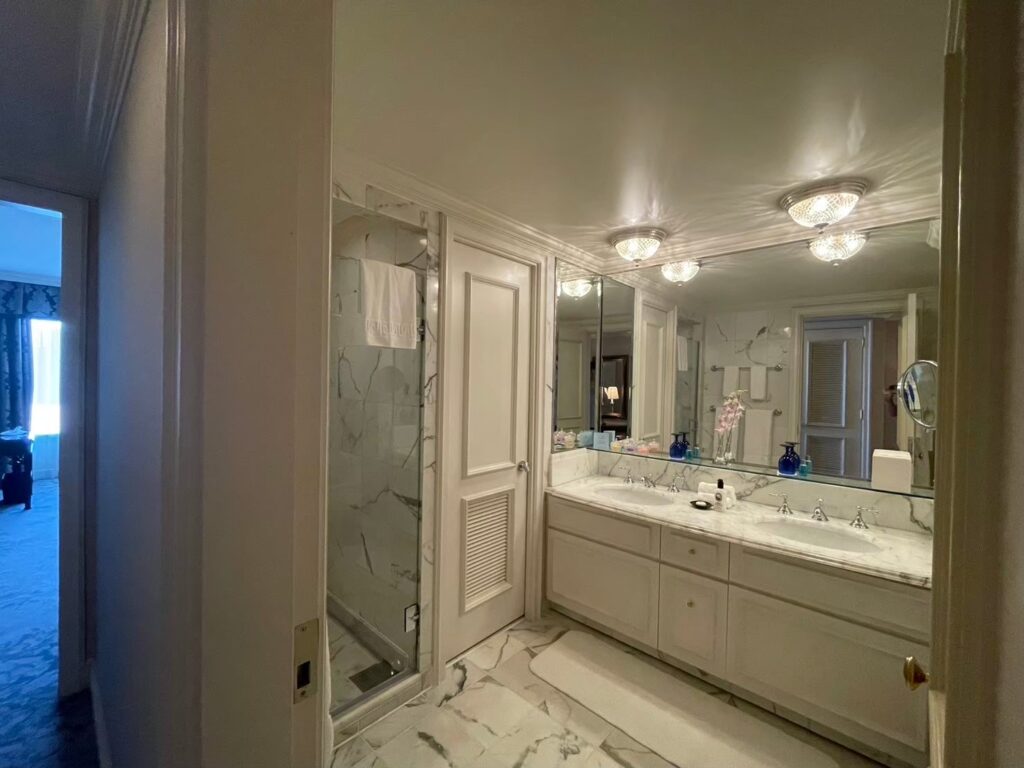 バスルームは、大理石調で高級感があります。