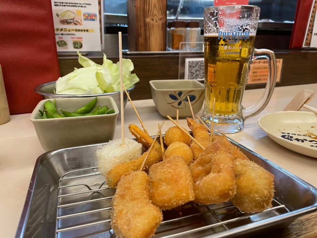 宿泊した夜は、歩いて北新地にある「串カツ だるまへ」