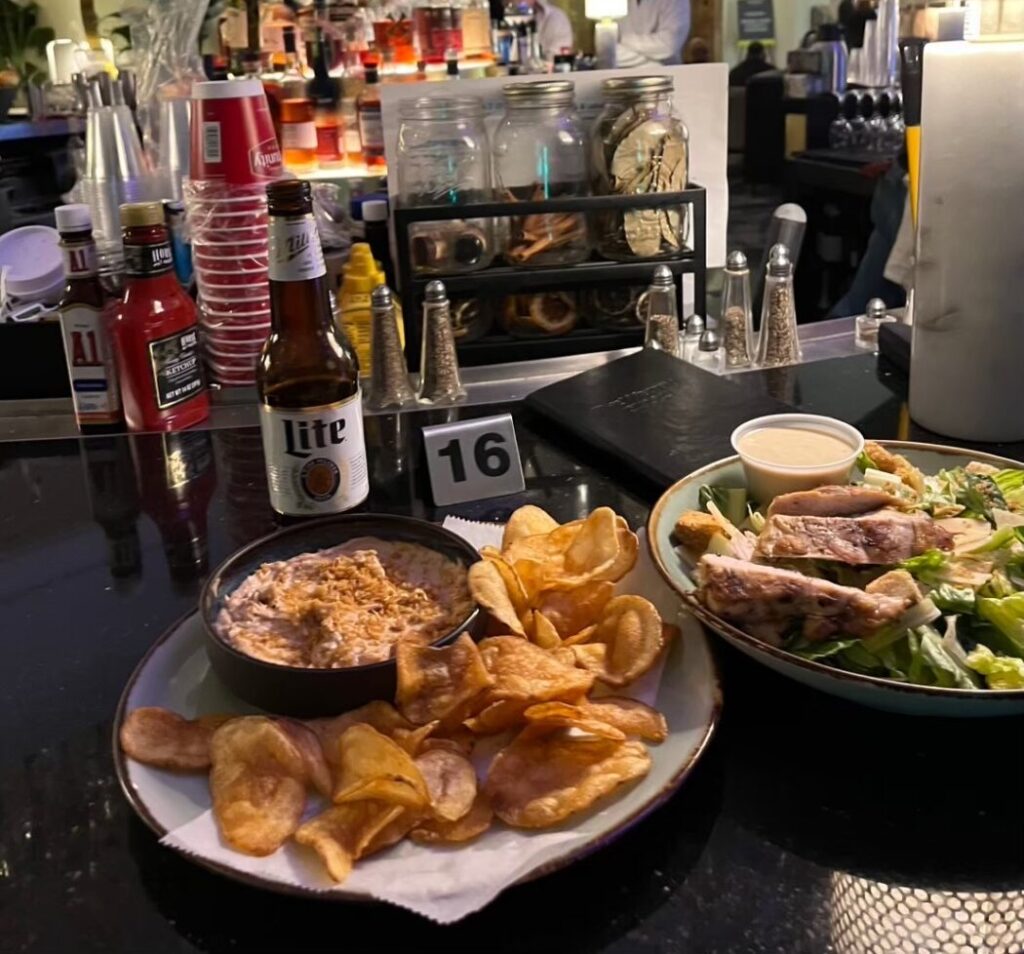ビール×2、分厚いポテチ、シーザーサラダでいただいたクレジット消費。