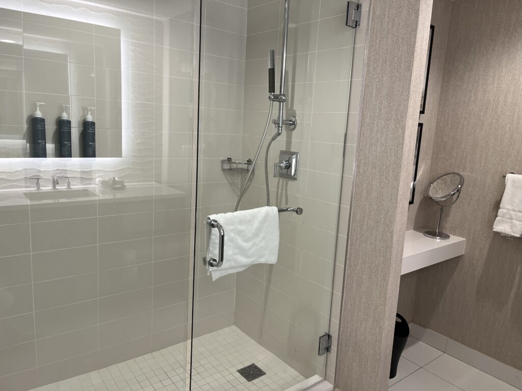 シャワールーム。バスタブはありませんでしたが、シャワーが2種類完備されていたので、快適でした。
