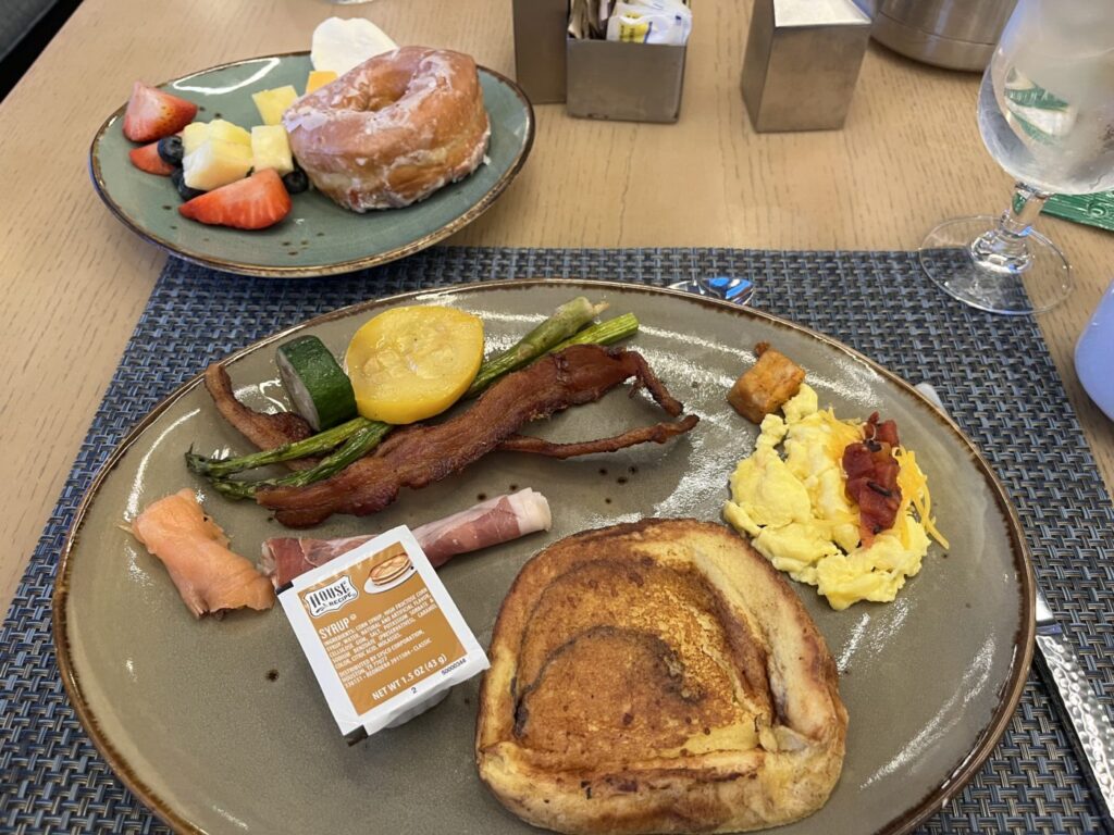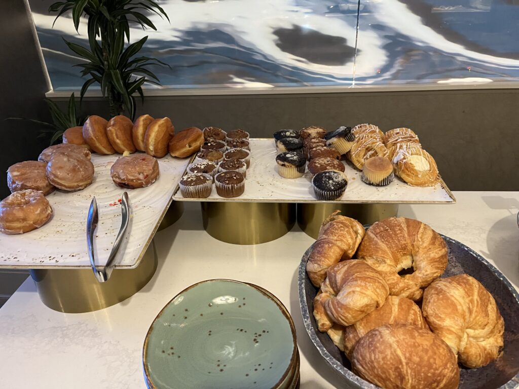 ビュッフェ形式で、ドーナツやパンケーキ、スクランブルエッグ、ベーコンなどアメリカンなブレックファーストがメインです。